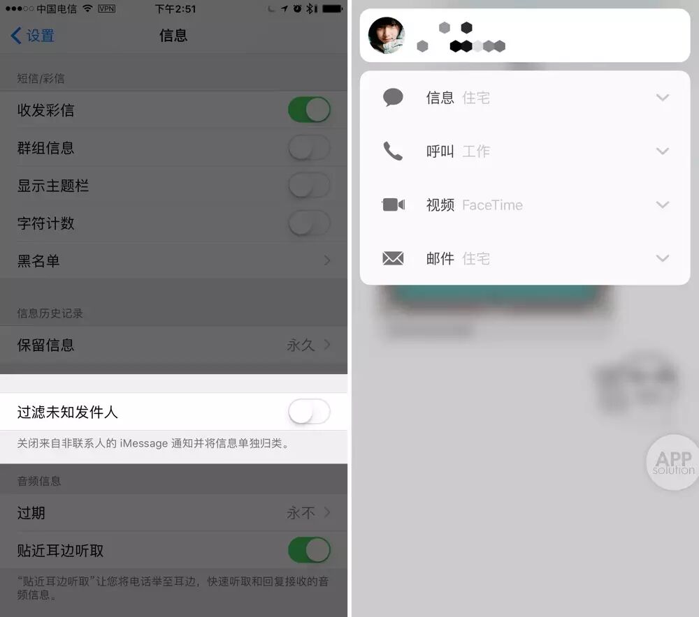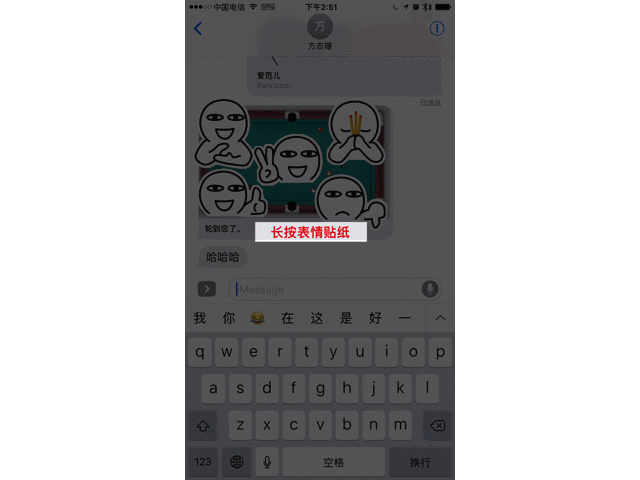 5. 更好的链接预览,但还是要去 Safari 才能看在 iOS 10 里,当一个超链接在信息的开头或结尾的时候(包括整条信息只有一条链接的情况),链接都会被转成带图片的预览模式。不过当你第一次遇到这种情况的时候,系统会让你手动启用预览,之后就会自动加载这个模式了。可惜的是,现在你还不能在 iMessage 里调用 Safari View Control(Safari 精简版)来查看网页,而是跳转到 Safari 应用里。(注:有个叫 Snappy 的付费应用可以让你在 iMessage 里看网页)此外,YouTube 链接可以在对话窗口直接播放视频,而且会根据你聊天窗口的停留位置自动暂停和播放。6. iMessage app 页面的消息提醒和回复在你使用 iMessage 第三方 app 的时候,如果有人给你发消息,会在顶部的头像下方显示消息内容。不仅如此,你还可以不离开当前 app,直接给好友回信息。这体验实在太棒了。前面忘了跟你说,iMessage 表情贴纸是我见过用法最奔放的。你可以将任意一张表情贴纸,贴在聊天窗口的任意位置,比如我有很多朋友喜欢贴在别人的信息上面挡住字……好玩是好玩,但该怎么把它们移走呢?你只需要长按那张贴纸,选择「查看详情」,在弹出的窗口中将表情左滑删除即可(见下图)。发信息时可设置包含「主题」,此时输入栏变为上下两栏,在「主题」处输入的内容会加粗。不过我们暂时不知道该功能的正确使用姿势……iMessage 支持 Spotlight 全局及应用内搜索。二者各有利弊,前者能识别拼音,仅能搜出部分符合关键词的内容;后者不支持拼音,但能将包含关键词的内容全部列出。不得不说,iMessage 的搜索功能真的很不好用,在这方面应该向微信学习。不少朋友在启用 iMessage 后饱受垃圾信息轰炸,无奈将 iMessage 功能关闭。其实选择开启「过滤未知发件人」,可将非通讯录联系人发送的 iMessage 信息单独列出,一键隔离烦人的广告邮件。iMessage 对 3D Touch 的支持很完善,基本在 app 里能看到头像和名字的地方,你都可以通过 3D Touch 来唤出快捷操作菜单。至于基础的 Peek 和 Pop 就不赘述了,以后有机会专门跟大家聊聊 3D Touch。