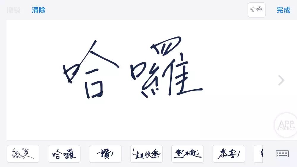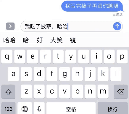 巧合的是,苹果今年 WWDC 上演示这个功能的前一个月,Google 在 I/O 大会上演示的聊天工具 Allo也有类似的大小声「特效」。不知道只是巧合,还是其中有什么故事 : )iMessage 还提供了五种屏幕特效(在特效页面的顶部切换),分别是气球、五彩纸屑(伴随抛洒声效)、激光(伴随激光发射声效)、焰火(伴随礼花绽放声效)和流星(伴随「叮」的声音)。Tip: 发送「生日快乐」,则不管是否使用屏幕特效都会自动气球效果;发送「新年快乐」,则不管是否使用屏幕特效都会自动使用焰火效果。屏幕特效让我想起了很多人喜欢在微信玩的一个「掉表情」节日彩蛋。比如你发「么么哒」就会掉 😘,发「生日快乐」就会掉蛋糕。除了以上这些(浮夸的)特效,iMessage 还提供了其他发消息的姿势。在 iMessage 的对话页面切换到横屏就能进入手写模式,你会看到 iMessage 已经内置了一些字写得还不错的快捷短句。你可以直接选择一句来发送,或是自己动手来写。