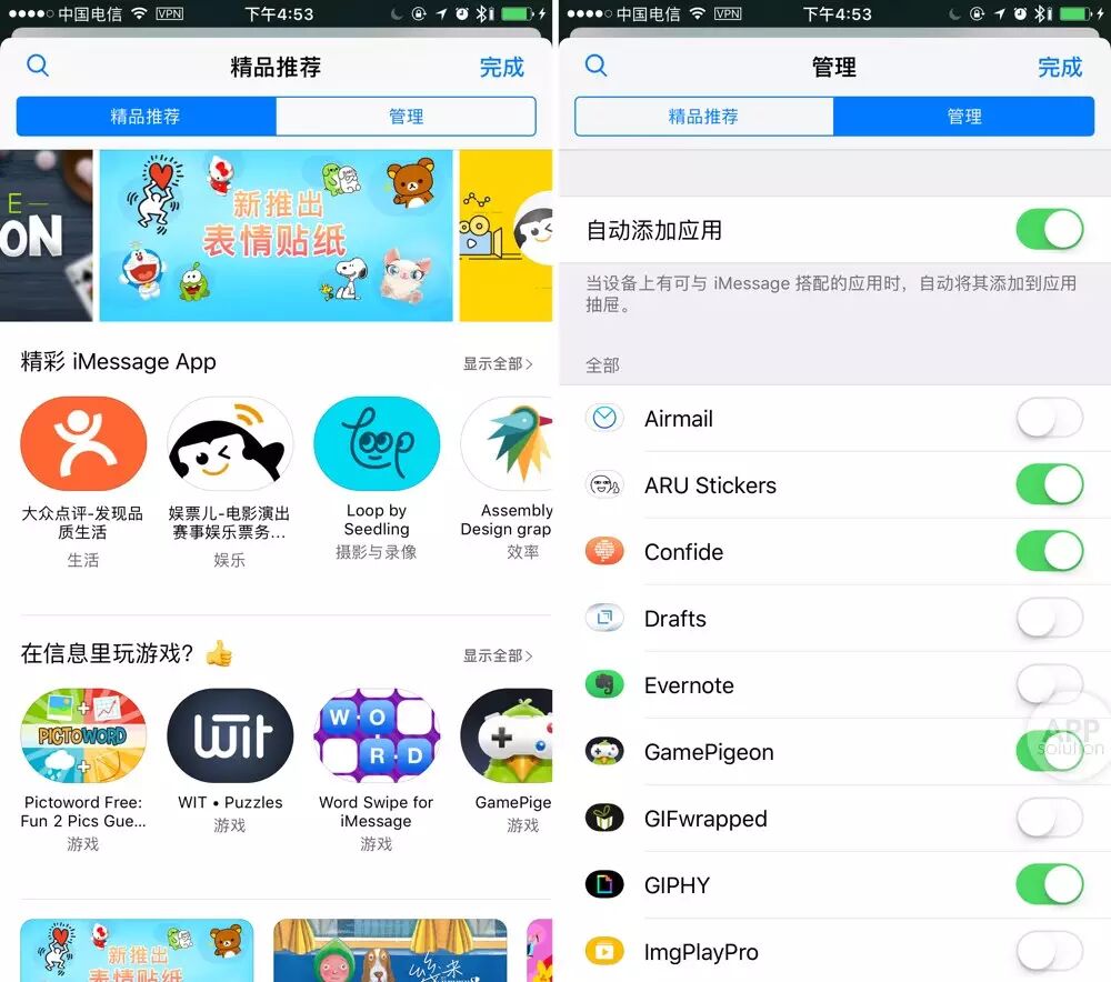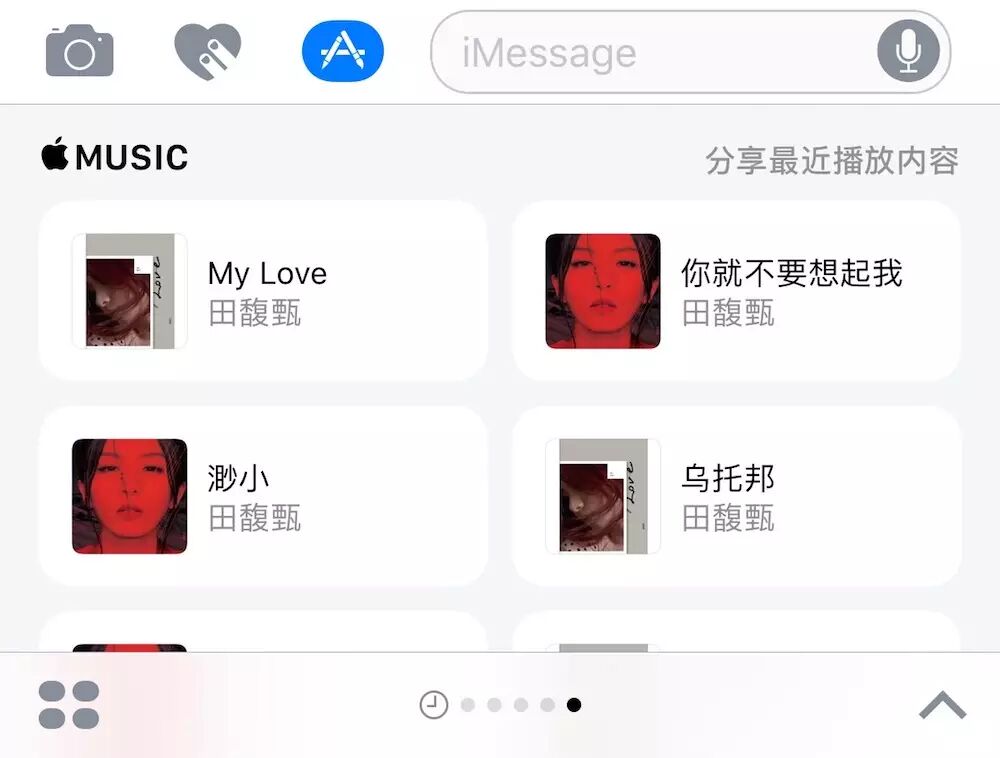GIPHY:很多人喜欢在微信里收藏各种表情包,但如果你在 iMessage 里有了 GIPHY,你就将全球最大的 GIF 动图库变成了自己的表情包弹药库。Confide:这是我们推荐过的一个阅后即焚消息 app,以前有不少人觉得鸡肋,但它却是 iMessage 的完美搭档。它让你在 iMessage 里直接发送阅后即焚信息,支持文字和图片。Apple Music:虽然这个不算第三方 app,不过这款 iMessage 插件可以让我非常快速地分享正在听的音乐,感觉很好。不过,如果你的朋友想听,他也得开通 Apple Music 服务才行。上周刚刚横空出世的微信小程序让许多人兴奋不已,不过 小程序展现实力之前,iMessage App Store 已经做了很好的示范。但别忘了,虽然 iMessage 只是一个 app,但背后是有了苹果整个原生生态的支持,才能做到如此体验。小程序表现又会如何呢?
