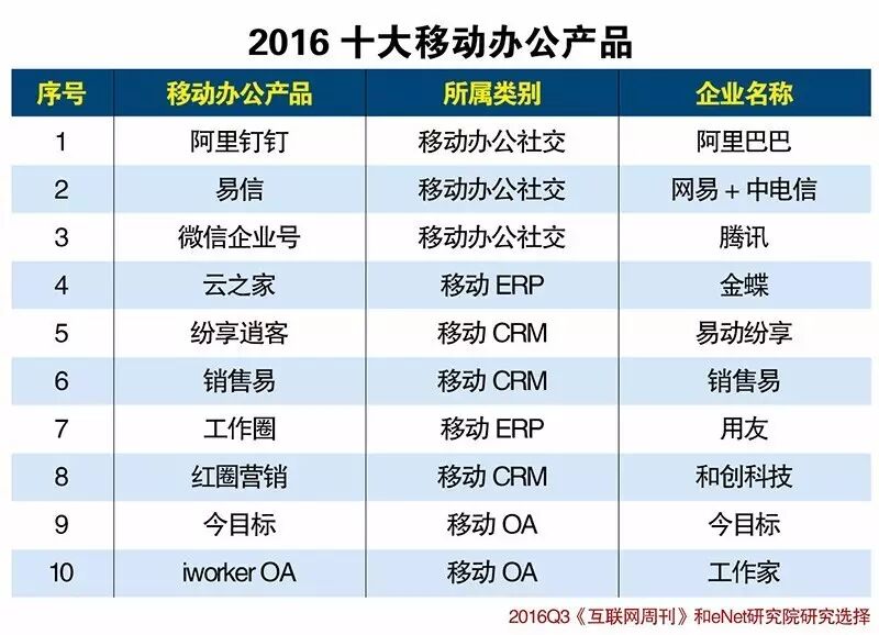以下是我们汇总的2016移动办公领域十大代表性产品(排名不分先后):