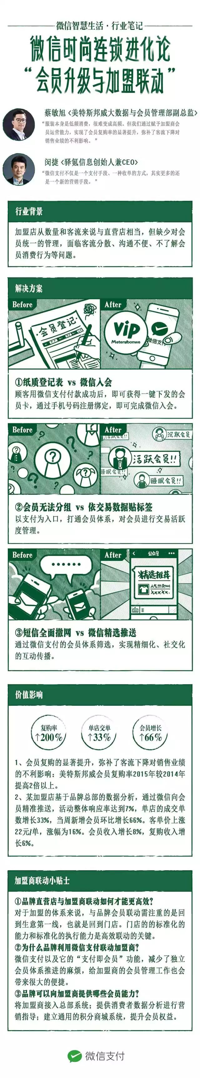 借助微信“支付+会员”体系,美特斯邦威赋予了加盟商会员管理能力,与加盟商共享直营门店的会员数据,帮助加盟商门店实现与会员的精准触达、沟通,提升复购率,进一步提升门店业绩。