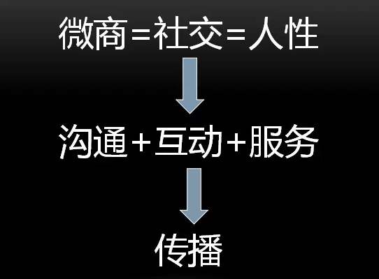 微商=互动+服务=传播,指的是微商唯有通过用心的与粉丝做好互动(沟通+交流)发现用户需求,了解用户痛点,再加上用心的极致服务去打动客户,才有可能让客户为你主动做口碑传播。