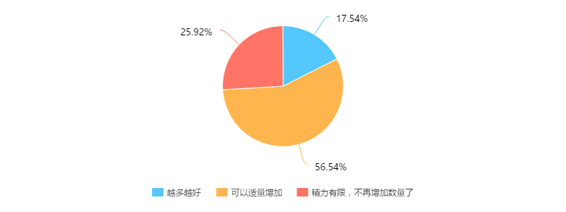 56.54%的微商认为自己还可以适当增加所代理产品的数量,微商对可以代理的好产品的需求还是比较大的,不到1/3的微商选择坚守一款产品。
