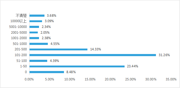 微商团队以500人以下为主,占比高达八成,有8.48%的微商没有团队,是个体为主的一群人,他们本身就有实体店,做微商是为了发展线上渠道,为实体增加收入。
