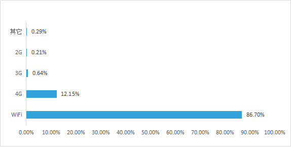 WIFI网络使用占比86.70%,4G网络使用占比12.15%。手机流量费用较高,微商更愿意在有无线网络的地方工作来降低微商成本。