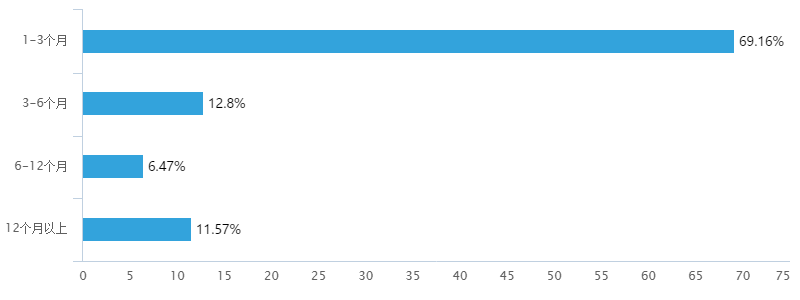 真正从事微商的时间并不长,有69.16%的人从事微商不到3个月,有81.96%的人从事微商不到半年。这个数据由于调研群体可能有局限性,但绝大部分人真正从事微商不到半年。一方面,大多数微商从业者缺乏运营经验;另一方面,与微商行业较大的洗牌速度有关,行业激烈竞争导致仅有少数优秀者能够有1年以上的运营。