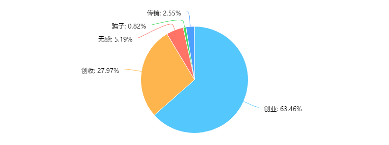 63.46%的微商认为做微商是创业,27.97%的微商认为微商是在创收,这部分人都在用心做微商,是在靠卖货挣钱,慢慢将微商行业带入正轨;但也有2.55%的微商认为微商是传销,0.82%的微商认为微商是骗子,他们并没有完全接纳微商行业,这部分微商是抱着尝试心态试试水。